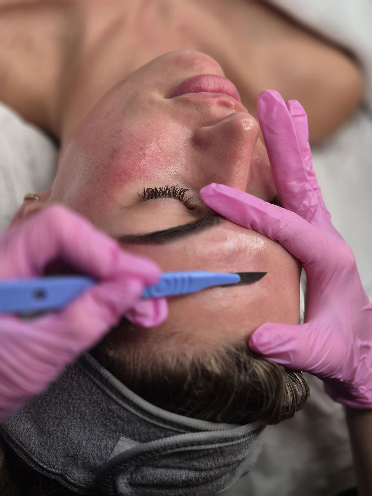 Dermaplaning – Remove dead skin and peach fuzz for a glassy finish